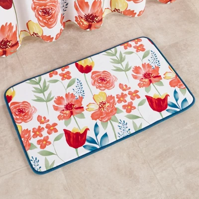 Brighten up your bathroom décor for spring with this delightful Flower Design Bath Mat. This memory foam mat showcases a vibrant floral pattern in shades of red, orange, and yellow, bringing a burst of color and cheer to your space. Measuring 18″ x 30″, it is crafted from polyester and includes a nonslip latex backing for added safety. The absorbent material quickly soaks up water as you step out of the tub, and added comfort. Ideal for adding a cheerful touch to your bathroom.