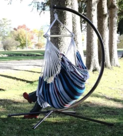 The Hamptons Collection 85″ Black Steel Stand For Brazilian Style Hammock Hanging Chairs