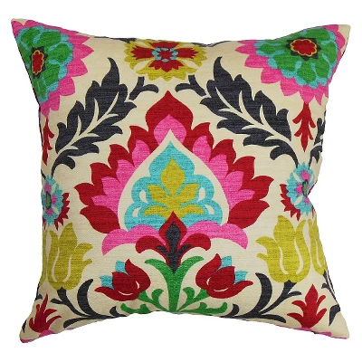 Vivid colors lend a joyous floral vibe to this Pink Boho Throw Pillow from The Pillow Collection. With shades of pink, red, natural, green and blue, this square pillow will instantly lighten up your interiors. The floral pattern provides texture and dimension to this decor pillow. Ideal for home and office use, you can pair this 18″ pillow with a matching pattern or solids. Reversible pillow with same fabric on both sides. Includes a hidden zipper for easy cover removal and cleaning. Comes standard with a 5/95 down feather blend pillow insert.