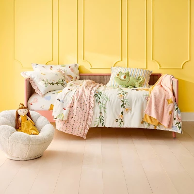 Add a cozy, inspirational accent to your kid’s bed or armchair with this Princess ‘Follow Your Dreams’ Kids’ Throw Blanket from The Disney Collection by Pillowfort™. Made from soft recycled polyester knit fabric with recycled polyester backing, this throw blanket features the text “Follow Your Dreams” on a pink backdrop on one side and a solid yellow reverse. It’s perfect for keeping them comfy while they watch a movie or read a book.