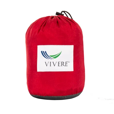 This red and gray hammock is the perfect hammock to bring with you on your travels! This hammock folds up in an attached sack and is perfect for bringing with you wherever you may go. Read a book, take a nap or have a drink while swaying in the warm breeze this summer with this hammock. Order your hammock today to relax in style this summer!Features:Red and gray nylon hammockThis hammock can hold up to two peopleComes with a sack that you can store the hammock inWeight capacity: 400lbs For outdoor use onlyDimensions: 128 inches long by 79 inches wideMaterial(s): nylonNote: Stand and hanging hardware are not included
