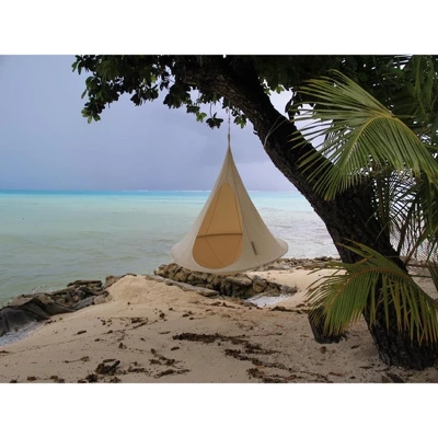 This white two person cacoon chair is perfect for relaxing from the stresses of the day inside or outside. Hang from a tree or from the ceiling in your home for a quick and easy way to relax. Read a book, take a nap or drink a cup of coffee in this chair today!Features:Two person white hanging cacoon chairFits two people Comes with a bag for easy storage For hanging chair comes with a nylon hanging system and a carabiner Maximum weight capacity is 440lbs Can be used indoors or outdoorsDimensions: 72”H X 72”W x 72”LMaterial(s): polyester, cotton