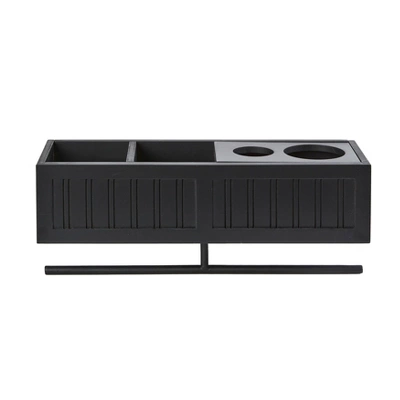 - 15-3/4″W x 5″D x 7″H. MDF and metal.