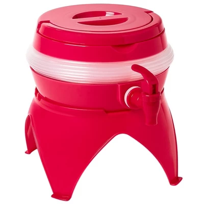 - This drink dispenser is designed with a unique collapsible feature, allowing for easy storage when not in use. This space-saving design makes it an ideal choice for those with limited storage space.