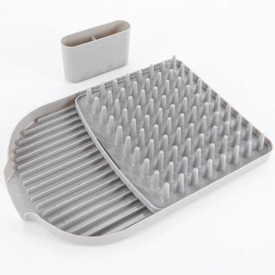 - Multi-Sectional Organization: Featuring three sections, including a dish drying rack with a drainboard and holders for flatware, cooking tools, and other kitchen accessories, this rack keeps your kitchen essentials neatly organized and easily accessible.