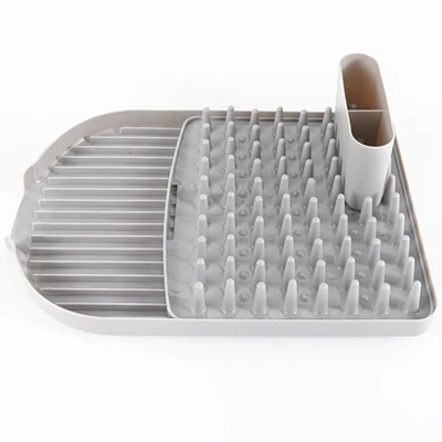 - Sturdy and Stable: Constructed from durable polypropylene, this countertop drying rack is sturdy and stable, ensuring it securely holds dishes in place without tipping or wobbling.