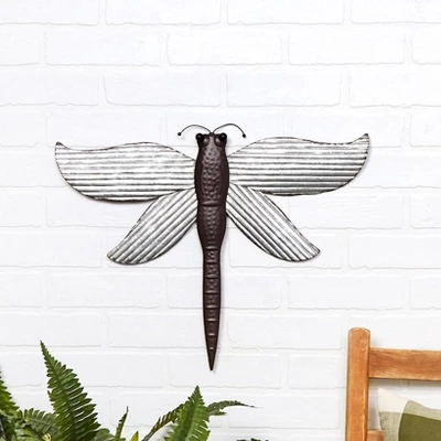 Brighten your indoors or outside space with Galvanized Wall Decor. Garden friend with shimmering wings looks great in a living room or on a patio on fence. Arrives ready to hang. Made of: Metal Mesurements: Approx. 18″W x 20-7/8″L