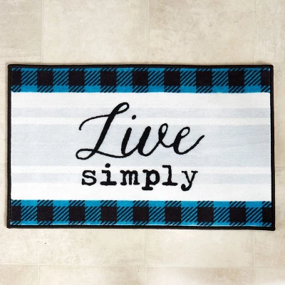 Give your bathroom a touch of the farmhouse with this Live Simply Spring Truck Bathroom Collection. The design features a black and teal buffalo check and the words “Live Simply.” The Shower Curtain includes a country pickup, with spring flowers in the truck bed. The Bath Rug is backed with nonslip latex.