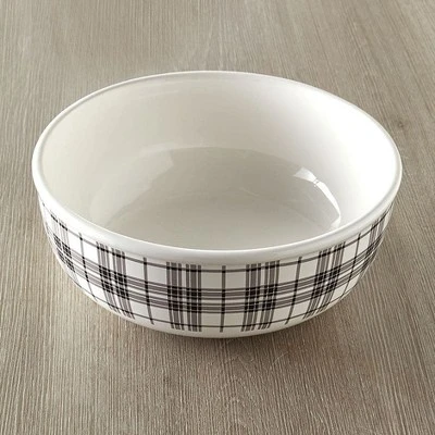 Serve in style with this Plaid Entertaining Collection. All pieces feature a black and white plaid print. Made of sturdy stoneware, they’re great for family gatherings, special occasions and ordinary meals. The Serving Bowl is a serving piece you can’t do without. 11-1/4″ dia. x 4-1/4″HStonewareMicrowave and dishwasher safe