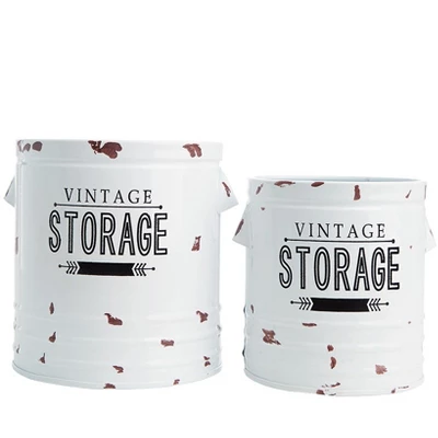 - The product is a set of two vintage storage canisters that add a touch of rustic charm to your kitchen or pantry. These canisters are not only functional but also serve as a decorative piece, enhancing the overall aesthetic of your space.