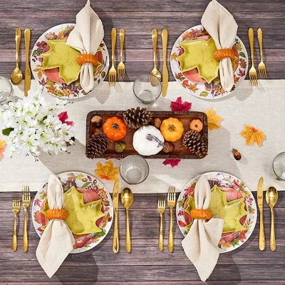 Prepare your table for Fall flavor with a Set of 4 Appetizer Plates. They add unique flair to any table setting. You can use them as colorful serving dishes for candy, nuts and more, too. Made of: Acorn, dolomite Fall Leaves, melamine Measurements: 8″ x 8″, each Notes: Dishwasher safe